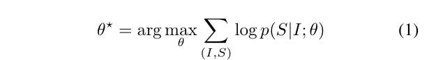“Maximize the probability of correct sentences given images.”Eq. (2):