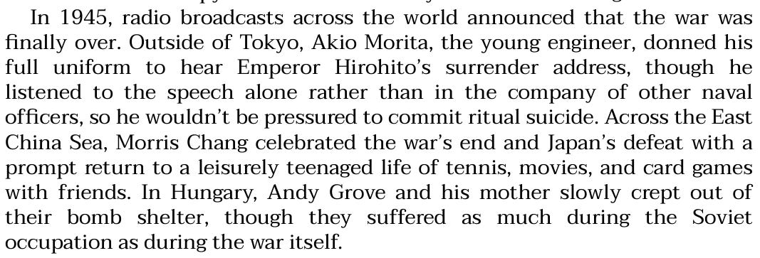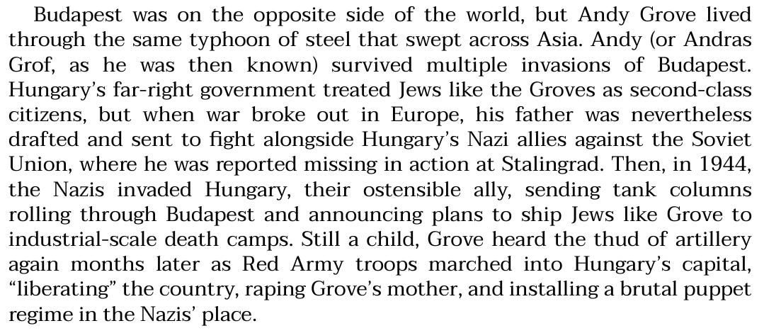 Andy Grove was in Hungary, Budapest, at the time, and he too was familiar with the “typhoon of steel” aspect of the war: