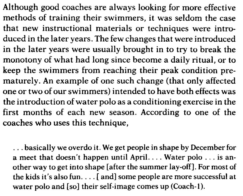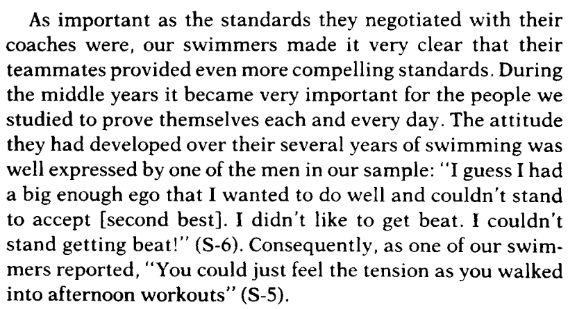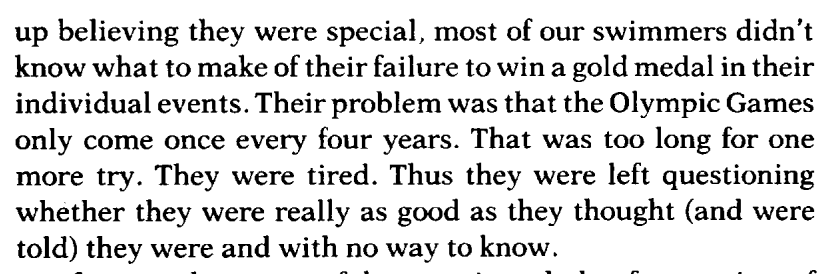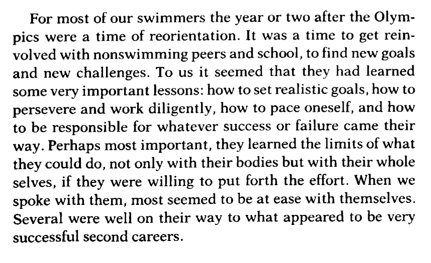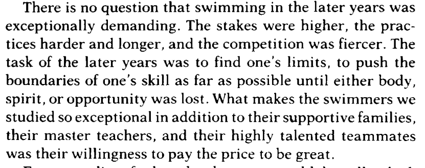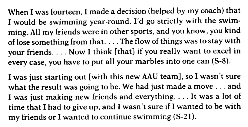 In the middle of their journeys - the swimmers became “exclusive” - they just committed fully to swimming: