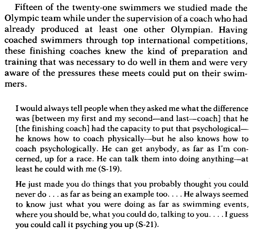 The top coaches have an enormous capacity to generate action; they can shape the psychology of the participant - to compete at top levels: