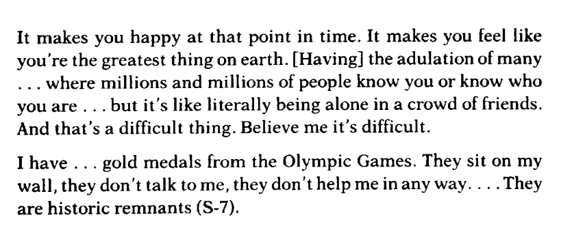 Olympics is a rare event - people don’t get enough chances to get clear answers - and they don’t get enough chances to try again: