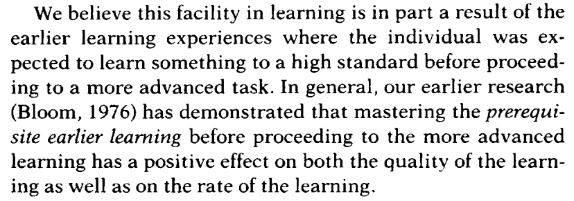 The ability to learn fast and well is connected to having a reservoir of prerequisites in one’s long term memory and system: