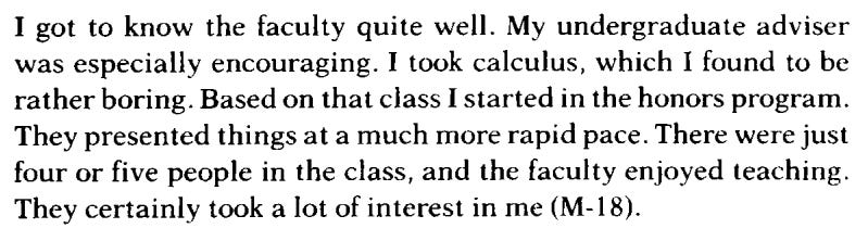 In undergraduate - they got good support, and also were pushed towards graduate studies: