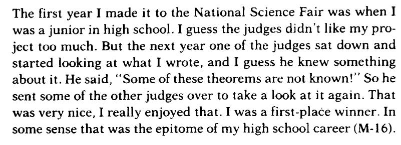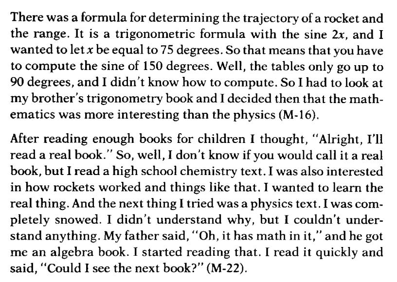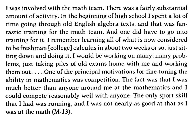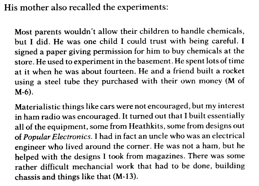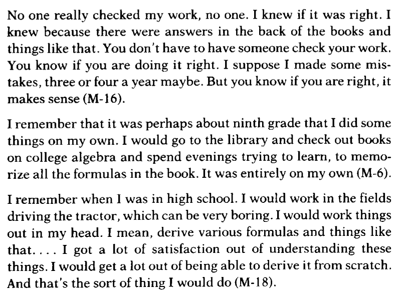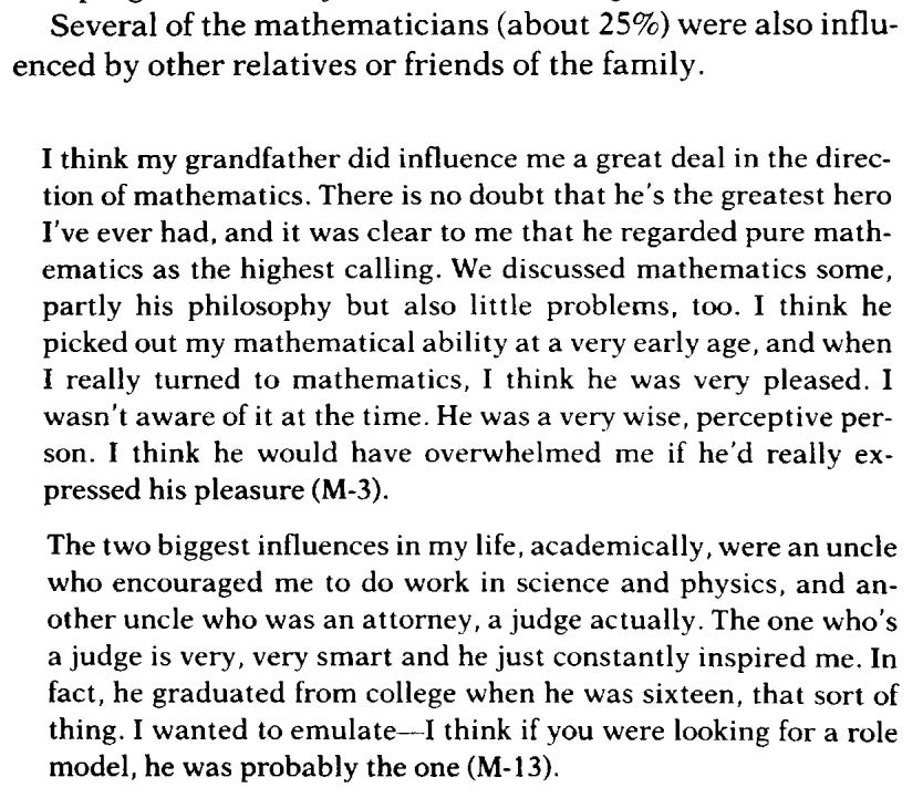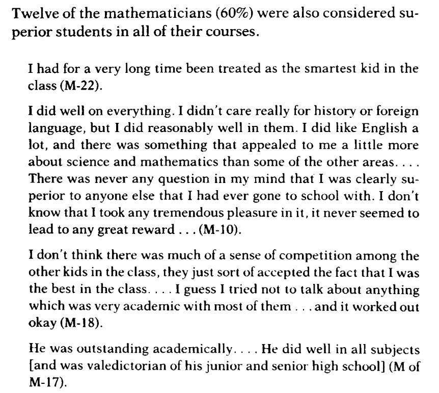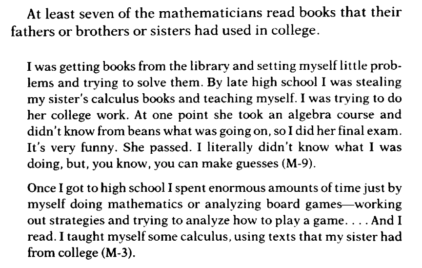 Even the parents recognized that the mathematicians were more careful and wise at younger ages and allowed them to carry out comparatively dangerous experiments on their own: