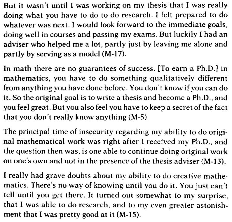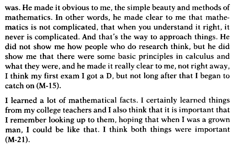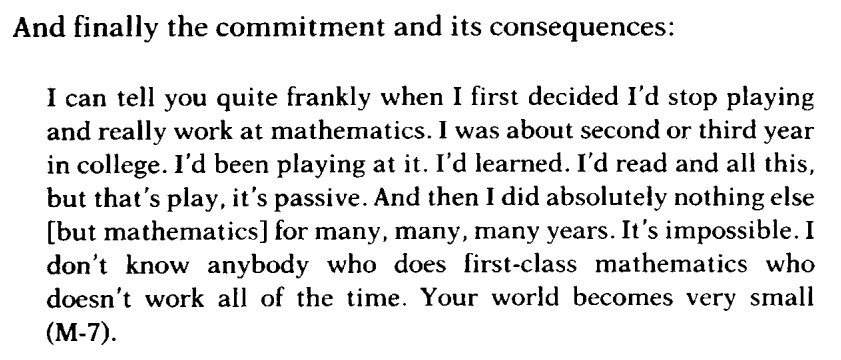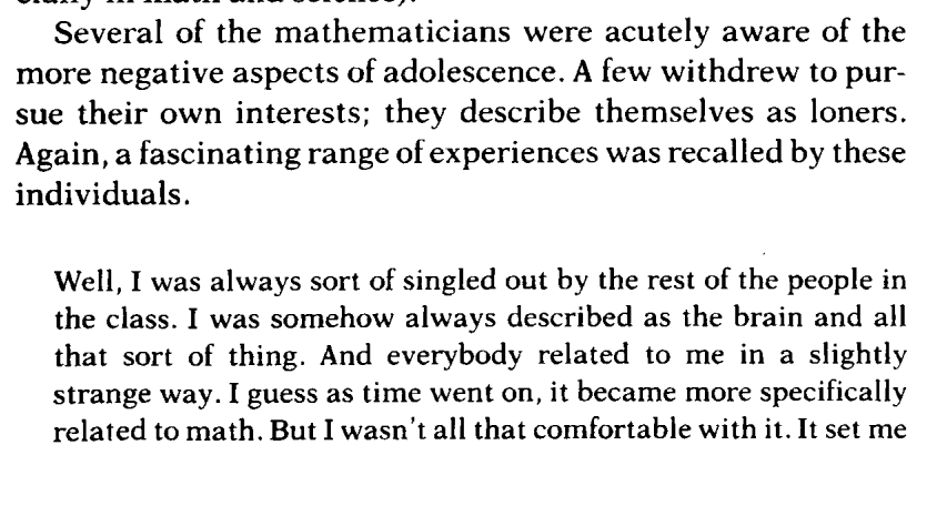 This ends the section on mathematicians. I am going to skip the section and excerpts from the neurologist - since I think I have got the overall drift of things and the way things progress across disciplines.