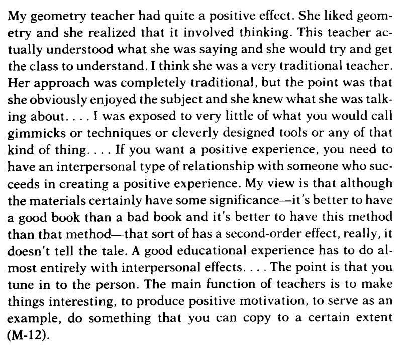Some teachers were able to deploy the “spirit” of a field correctly to people: