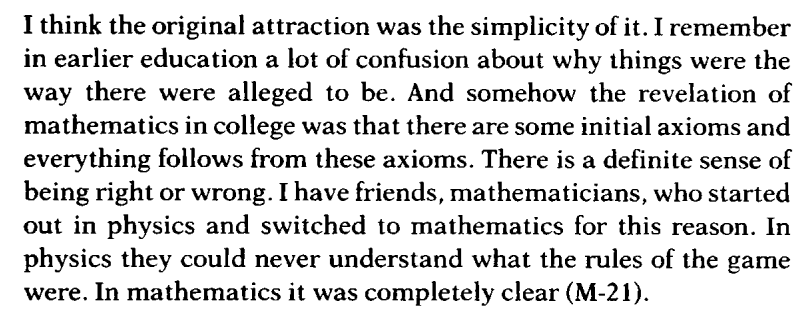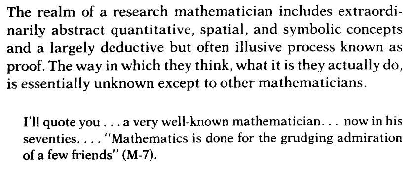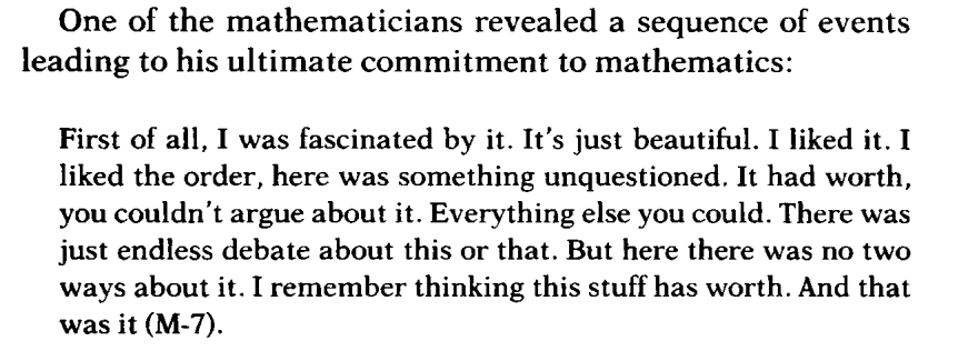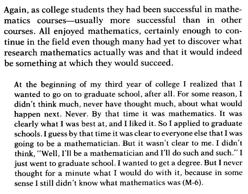 Others felt that these guys would be mathematicians. But they themselves were more focused on the next step - graduates studies - to figure out what math was. Look at the perspective - they were more focused on the content of the subject itself - and not on titles or what they may do in the future: