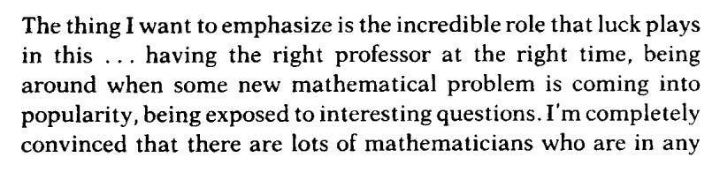 But there is also a very big luck factor in it - the environment, timing, one’s circumstances, preparation, all play a role: