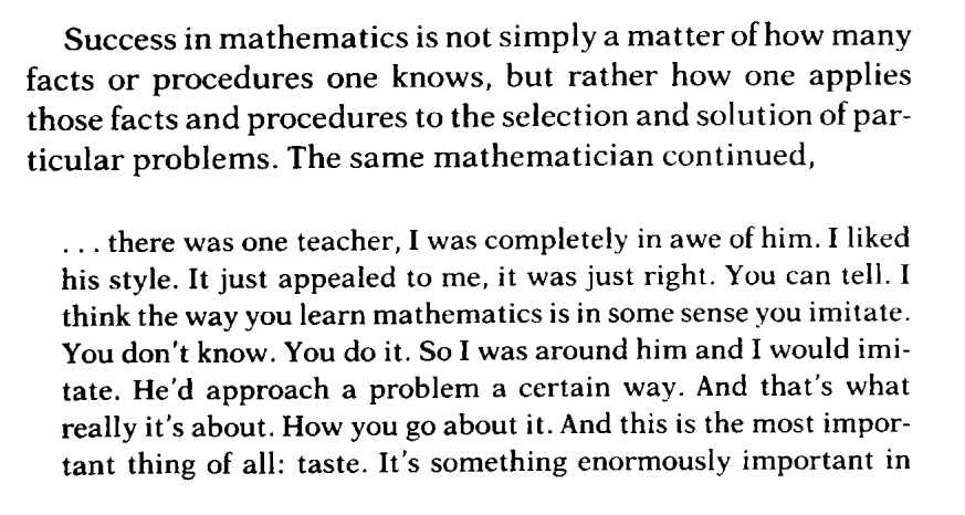 There are different styles to approach mathematics, and one learns from one’s own experiences and preferences to pick the style that suits one: