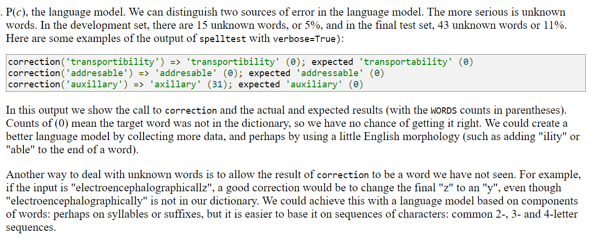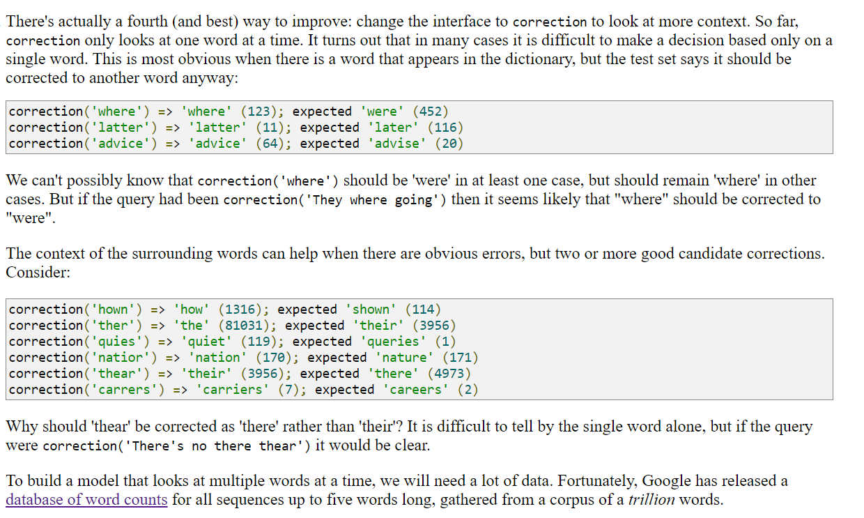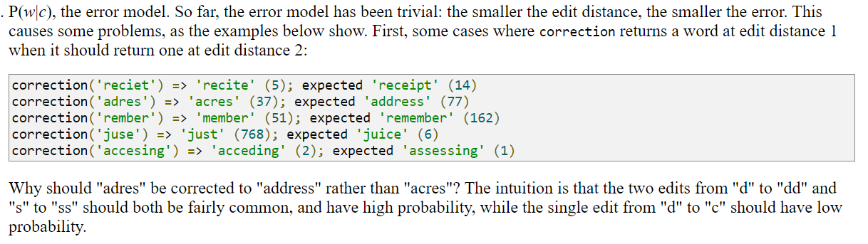 I’ll try to do a more refined implementation combining the original paper’s error model and maybe one of the datasets mentioned by Norvig here (probably the 1st one to see if the correct model does better than the one obtained here).