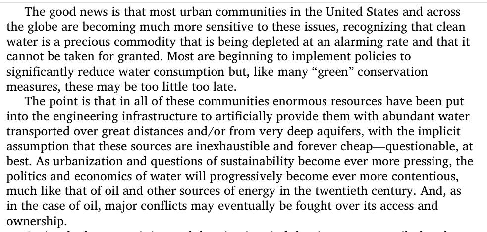 Just like in Bangalore - water tends to be transported across long distances to supply these cities/settlements: