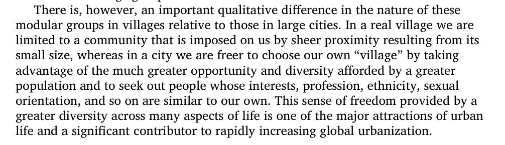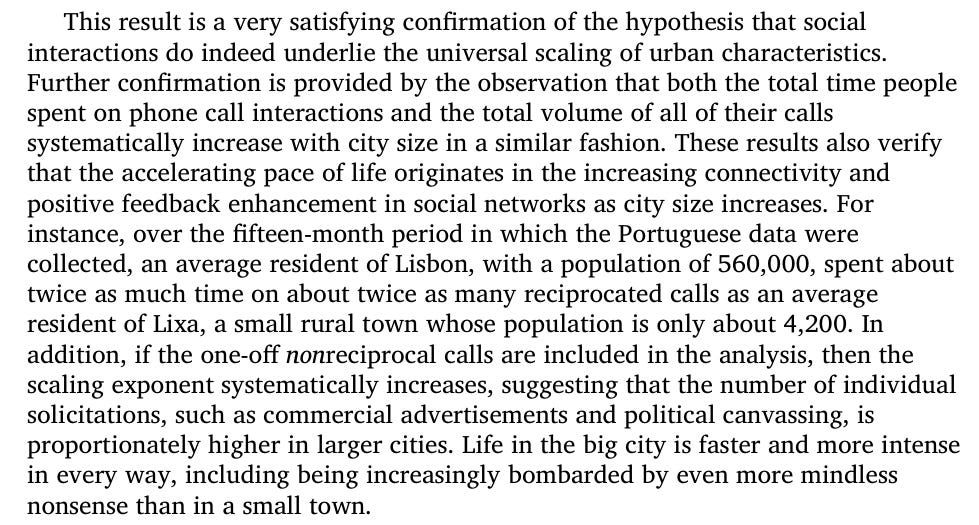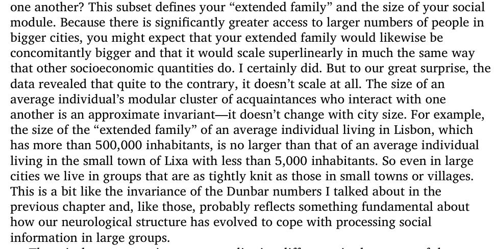 Although in a city the number of contacts increase - it’s a different kind of network (single hop kind of networks). All said and done - the “extended family” is usually limited to 150 people:
