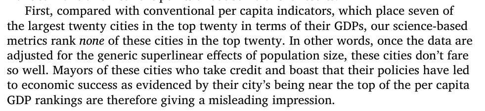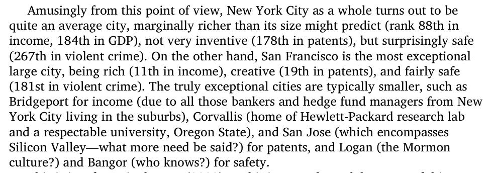 Despite the glitz and common belief - New York is quite an average city from a scale-adjusted point of view: