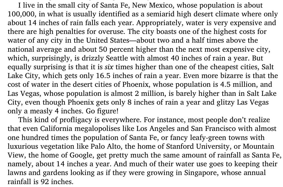 Prices work in really idiosyncratic ways and properties of a particular location - an example of safe water prices in various US cities: