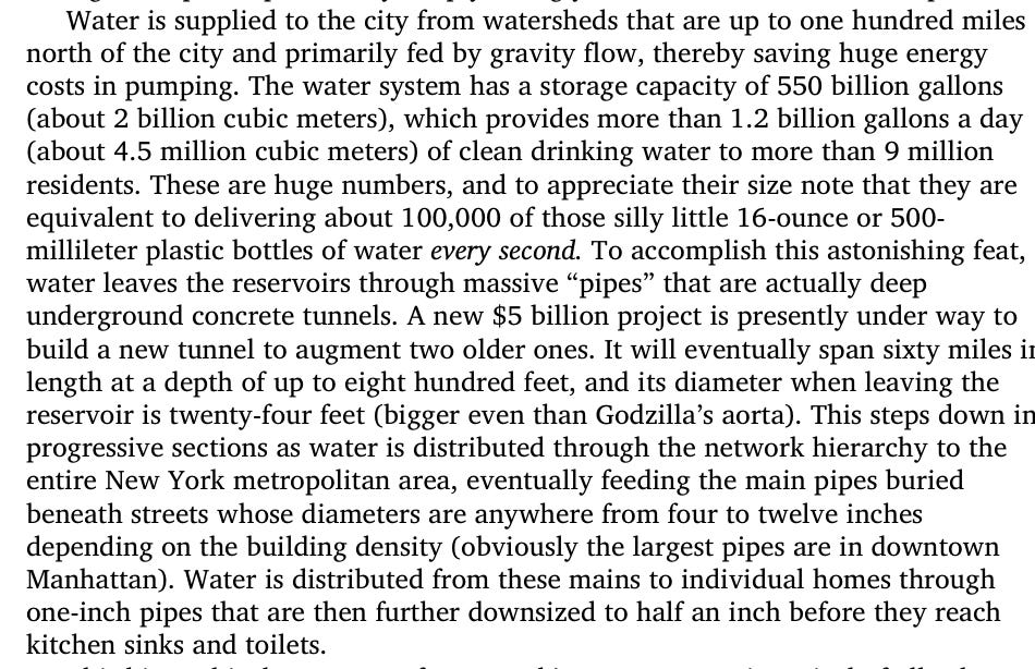 New York has a gravity flow powered, 100-mile distance water shed sourced water system: