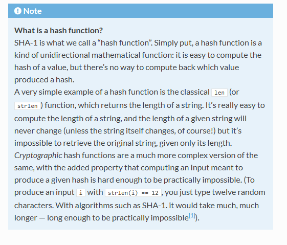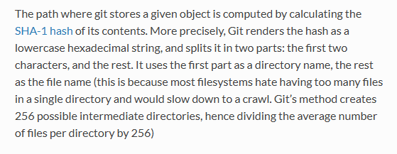 Git takes in a file, calculates its sha-1 hash. Example: